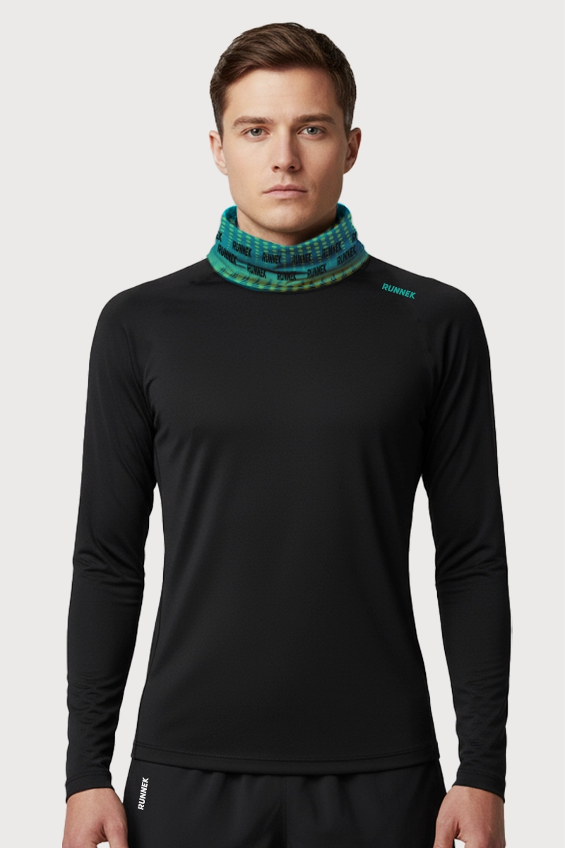 Fabricada con tejido técnico de poliéster de microfibra elástica para un ajuste perfecto al cuello.