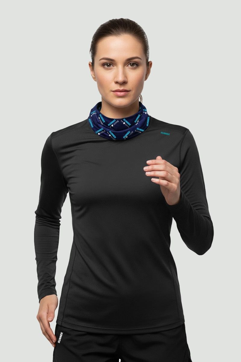 Braga de cuello fabricada con tejido técnico de poliéster de microfibra elástica para un ajuste perfecto al cuello.